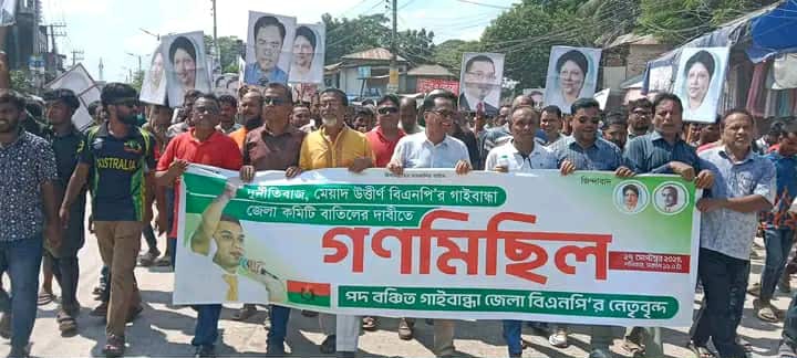 গাইবান্ধা প্রতিনিধিঃ গাইবান্ধায় বিএনপির দুর্বল, অযোগ্য নেতৃত্বে গড়ে ওঠা মেয়াদাত্তীর্ণ জেলা কমিটি বাতিল, পদবঞ্চিত যোগ্য ও ত্যাগী নেতাকর্মীদের মূল্যায়নের দাবিতে গণমিছিল করেছেন নেতা-কর্মীদের একাংশ। আওয়ামীলীগ কে পূণবাসনকারী এবং জেলা বি.এন.পির মেয়াদ উত্তীর্ণ সকল কমিটি বাতিলের দাবী নিয়ে শহরের প্রধান প্রধান সড়ক প্রদক্ষিন করে বিএনপি'র নেতা-কর্মীদের একটি অংশ। বিএনপির ভারপ্রাপ্ত চেয়ারম্যান তারেক রহমান ও জেলা বিএনপির সাবেক সভাপতি এ্যাডভোকেট হামিদুল হক ছানা'র ছবি'র ফেস্টুন নিয়ে গণমিছিলে অংশ নেয় নেতা-কর্মীরা। শনিবার সকালে জেলা শহরে অনুষ্ঠিত গণমিছিলে বক্তব্য রাখেন জেলা বিএনপির সাবেক সভাপতি এ্যাডভোকেট হামিদুল হক ছানা,পৌর বিএনপির সাবেক সভাপতি আবু বক্কর সিদ্দিক, কামরুজ্জামান সেলিম, মো: শফিকুল ইসলাম রুবেল সহ দলীয় নেতৃবৃন্দ । বক্তারা বলেন বর্তমান কমিটি অনেক আগেই মেয়াদউর্ত্তীন হয়েছে, সেই মেয়াদ উর্ত্তীন কমিটিই আজ মোটা অংকের টাকার বিনিময়ে ফ্যাসিষ্টকে পূর্নবাসনের কাজ চালিয়ে যাচ্ছে। জেলা বিএনপি'র সাবেক সভাপতি এ্যাডভোকেট হামিদুল হক ছানা বলেন, বিএনপির মেয়াদোত্তীর্ন জেলা কমিটির বিরুদ্ধে ফ্যাসিবাদ পূর্নবাসনের অভিযোগে উপজেলাগুলোতে নেতা-কর্মীরা কঠোর অবস্থানে আন্দোলনরত। এই মেয়াদোত্তীর্ণ জেলা কমিটির বিরুদ্ধে বিভিন্ন উপজেলায় ত্যাগি নেতা-কর্মীরা ঝাড়ু মিছিল করে প্রতিবাদ জানিয়েছেন। ইউনিয়ন, ওয়ার্ড কমিটির নামে ফ্যাসিবাদের সম্পৃক্ততা তৈরী করার ক্ষেত্রে মেয়াদোত্তীর্ণ কমিটি অভিনব কৌশলে ঐতিহাসিক দল বিএনপিকে জন-আস্থাহীন করার অপচেষ্টায় লিপ্ত বলেও এসব নেতারা অভিযোগ তুলেছেন। শুধু তাই নয় সদরের ছোট ছোট কমিটি গুলোতেও টাকার বিনিময়ে পদ বিক্রির অভিযোগ উঠেছে। তাই অচিরেই মেয়াদ উর্ত্তীন কমিটি বাতিল করার দাবি জানান। সেই সাথে এই কমিটির অধিনে ঘোষিত সকল ইউনিটের নির্বাচন বন্ধের দাবিও জানান।