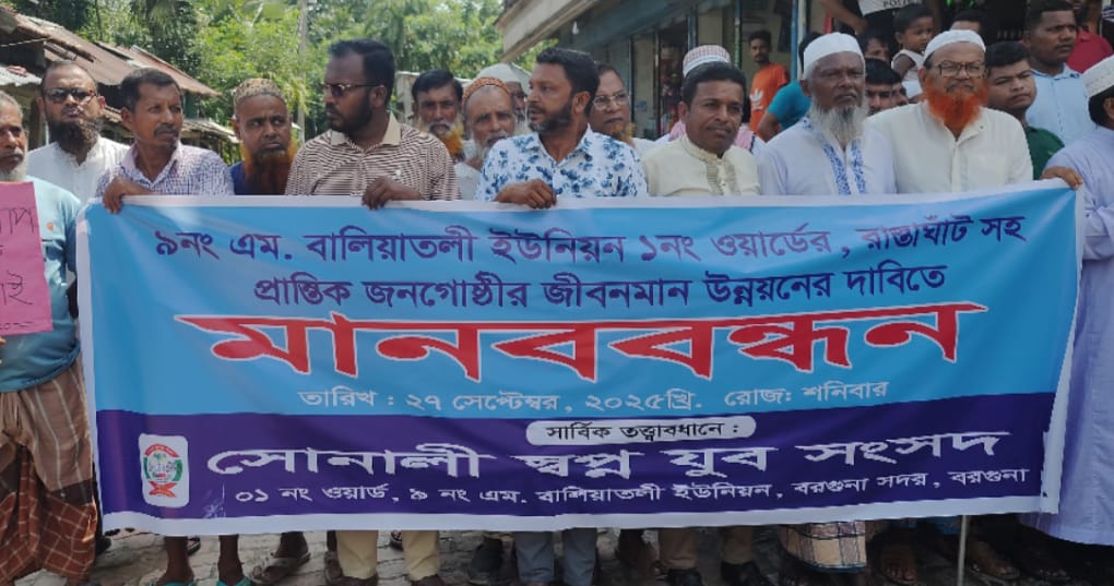 বরগুনা প্রতিনিধি: বরগুনা সদর উপজেলার ৯নং এম বালিয়াতলী ইউনিয়নের ১নং ওয়ার্ডের একটি গ্রামের নাম জেলখানা। নাম শুনে মনে হতে পারে এখানে কোনো কারাগার রয়েছে, কিন্তু বাস্তবতা হলো—এই গ্রামের মানুষদের জীবনযাত্রা আসলেই বন্দী জীবনের মতোই কষ্টকর। মৌলিক অধিকার থেকে বঞ্চিত, রাস্তাঘাটহীন, স্বাস্থ্যসেবা ও শিক্ষার সুযোগ বঞ্চিত এ গ্রামবাসী উন্নয়ন থেকে যুগের পর যুগ পিছিয়ে পড়েছে। জেলখানা গ্রামের চারপাশ ঘিরে খরস্রোতা পায়রা নদী, আর ভেতরে আদিম যুগের মতো ভাঙাচোরা কাঁচা রাস্তা। ২০০৩ সালে এক হাজার মিটার ইট বিছিয়ে সড়ক নির্মাণ করা হলেও, আজ সেই সড়ক খানাখন্দে ভরা ও চলাচলের অযোগ্য। বর্ষায় হাঁটাও দায় হয়ে পড়ে, কাদা-মাখা পথে কোমলমতি শিশুরা ভিজে-গোসল করা পোশাক পরে স্কুলে যায়। অসুস্থদের নিকটবর্তী হাসপাতালে নেওয়ার মতো জরুরি কোনো ব্যবস্থা নেই। কোনো ক্লিনিক নেই, সাইক্লোন শেল্টার নেই, নেই নির্ভরযোগ্য যোগাযোগ ব্যবস্থা। স্থানীয়রা বলেন, একবার চিকিৎসা অভাবে এক শিশুর মৃত্যুও ঘটেছে। আজ (শনিবার) সকাল ১০টায় সোনালী স্বপ্ন যুব সংসদ-এর আয়োজনে জেলখানা চৌমুহনী বাজারে মানববন্ধন অনুষ্ঠিত হয়। সংগঠনের প্রতিষ্ঠাকালীন চেয়ারম্যান হাফেজ আল-আমীনের সভাপতিত্বে বক্তব্য রাখেন ইউনিয়নের ভারপ্রাপ্ত চেয়ারম্যান মনিরুজ্জামান, ইউনিয়ন বিএনপির সিনিয়র যুগ্ম আহবায়ক মোঃ সেলাইমান কবির ইউনুস, সদস্য সচিব আক্তারুল হক, জুয়েল ম্যালকারসহ প্রমুখ। মানববন্ধনে সংগঠনের সভাপতি মোঃ রাজীব গ্রামের ১৩ দফা উন্নয়ন দাবি উত্থাপন করেন। বক্তারা বলেন, দক্ষিণবঙ্গের জেলখানা, চারাভাঙ্গা ও ঝিনইবাড়িয়া গ্রামগুলো এখনো উন্নয়ন বঞ্চিত। এখানে মোবাইল ফোনে কথা বলতেও নির্দিষ্ট স্থানে দাঁড়াতে হয়, ইন্টারনেট ব্যবহার প্রায় অসম্ভব। স্থানীয়দের দাবি, মাঝে মাঝে সরকার বরাদ্দ দিলেও তা জনগণের কাছে পৌঁছানোর আগেই কিছু প্রভাবশালী ব্যক্তির পকেটে চলে যায়। ফলে বছরের পর বছর বন্দী জীবনের মতো কাটাতে হচ্ছে তাদের। প্রযুক্তি ও আধুনিকতার যুগে দাঁড়িয়ে দক্ষিণবঙ্গের জেলখানা গ্রামের মানুষ এখনো ন্যূনতম যোগাযোগ ব্যবস্থা, স্বাস্থ্যসেবা ও শিক্ষা থেকে বঞ্চিত। তারা বলছে, অবহেলা নয়—এবার উন্নয়ন চাই, মানবেতর জীবন থেকে মুক্তি চাই।
