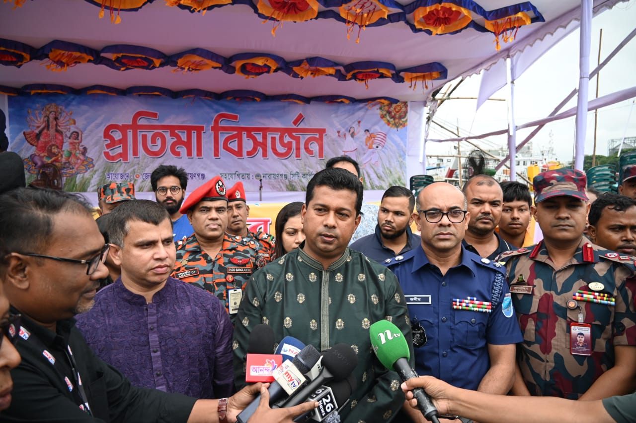 সুন্দরভাবে পূজা হচ্ছে। আমরা প্রতিটি উপজেলায় মণ্ডপ পরিদর্শন করেছি। আমরা চাই সবাইকে নিয়ে উৎসবমুখর পরিবেশে পূজাটা উদযাপন করতে।তিনি বলেন, কিছুক্ষণের মধ্যেই প্রতিমাগুলো আসবে। এ বিষয়ে আমাদের কাছে হিন্দু ধর্মাবলম্বীরা দাবি করেছিল ঘাটের জন্য। আজ আপনারা দেখছেন নতুন ঘাটে তারা প্রতিমা বিসর্জন করবে। ঘাটটি এখন অনেক বড় করা হয়েছে।