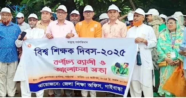 বাবুল রহমান রবিন গাইবান্ধা প্রতিনিধিঃ বিশ্ব শিক্ষক দিবস উপলক্ষে গাইবন্ধায় রোববার জেলা শিক্ষা অফিসের আয়োজনে র্যালি ও আলোচনা সভা অনুষ্ঠিত হয়।দিবসটি উপলক্ষে এবারের প্রতিপাদ্য বিষয় ছিল ‘শিক্ষকতাকে একটি সহযোগী পেশা হিসেবে পুনর্গঠন’। এ উপলক্ষে স্থানীয় পৌরপার্ক থেকে একটি বর্ণাঢ্য র্যালি বের হয়ে শহরের বিভিন্ন সড়ক প্রদক্ষিণ করে জেলা প্রশাসক কার্যালয় চত্বওে গিয়ে শেষ হয়। এতে প্রধান অতিথি ছিলেন জেলা প্রশাসক চৌধুরী মোয়াজ্জম আহমদ। পরে জেলা প্রশাসক কার্যালয়ের সম্মেলন কক্ষে এক আলোচনা সভা অনুষ্ঠিত হয়। জেলা শিক্ষা অফিসার মো. আতাউর রহমানের সভাপতিত্বে সভায় বক্তব্য দেন গাইবান্ধা সরকারি বালক উচ্চ বিদ্যালয়ের প্রধান শিক্ষক সুশান্ত কুমার দেব, অধ্যক্ষ মনিরুল ইসলাম, শরীফ মো. আবু ইউসুফ, বাংলাদেশ শিক্ষক সমিতি সদর উপজেলার সাধারণ সম্পাদক প্রধান শিক্ষক মো. রফিকুল আলম, আরজুমান আরা বেগম প্রমূখ। বক্তারা বলেন, একজন শিক্ষক শুধু পাঠদান করেন না, তিনি একজন শিক্ষার্থীর চিন্তা, চরিত্র ও ভবিষ্যৎ গঠনে গুরুত্বপূর্ণ ভূমিকা রাখেন। শিক্ষকরাই জাতিকে আলোকিত পথে এগিয়ে নিয়ে যান এবং সমাজকে গড়ে তোলেন জ্ঞান ও নৈতিকতার ভিত্তিতে। তাই তাদের ভূমিকা জাতি গঠনের কারিগর হিসেবে অনন্য ও অপরিসীম। এই দিবসটি শিক্ষকদের মর্যাদা প্রতিষ্ঠা এবং তাদের কাজকে মূল্যায়ন করার জন্য অত্যন্ত গুরুত্বপূর্ণ। তারা আরও বলেন, শিক্ষকদের যথাযথ সম্মান, মর্যাদা ও স্বীকৃতি দিতে পারলে তারা আরও সামর্থ ও অনুপ্রেরণা নিয়ে নতুন প্রজন্মকে গড়ে তুলতে সক্ষম হবেন।