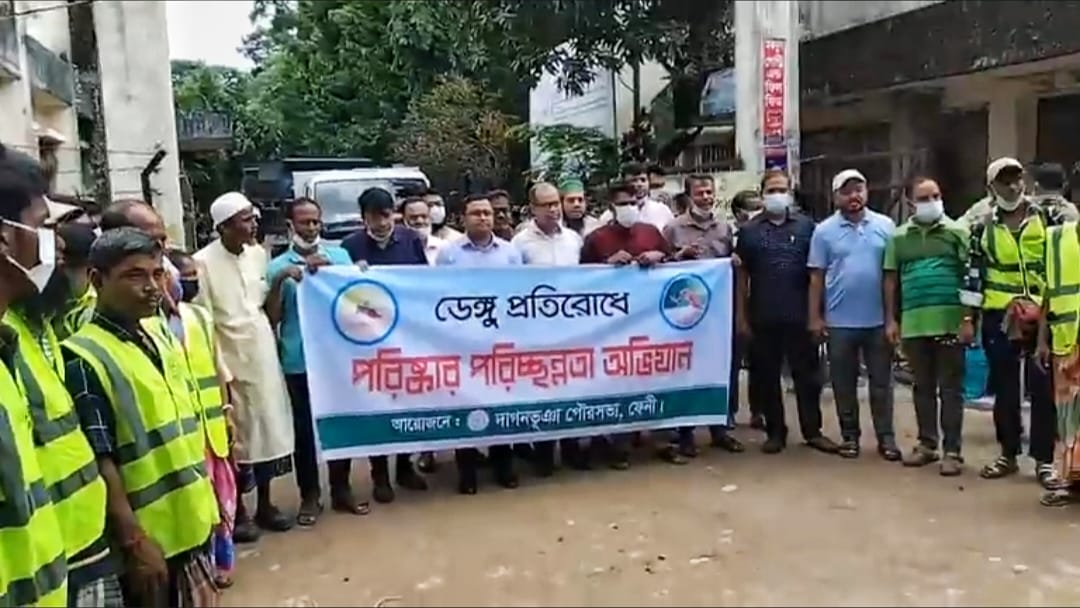 আবুল হাসনাত তুহিন ফেনী:-ফেনীর দাগনভূঞায় এডিস মশাবাহিত ডেঙ্গু রোগ প্রতিরোধে বিশেষ পরিষ্কার-পরিচ্ছন্নতা ও মশক নিধনে অভিযান পরিচালনা করেছেন দাগনভূঞা পৌরসভা। বৃহস্পতিবার (০৯অক্টোবর ) এই কর্মসূচি পালন করা হয়। দাগনভূঞা পৌরসভা আওতাধীন ৫০ শয্যা বিশিষ্ট উপজেলা স্বাস্থ্য কমপ্লেক্স থেকে রেলি বাহির করা হয়। রেলিটি হাসপাতালের সড়ক হয়ে ফেনী দাগনভূঞা মহাসড়কে এসে শেষ হয়। এ-সময় পৌর প্রশাসন ও উপজেলা স্বাস্থ্য ও পরিবার পরিকল্পনা কর্মকর্তার উপস্থিতিতে পরিচ্ছন্ন কর্মীরা সড়কে ফেলে রাখা ময়লা পরিষ্কার করেন এবং এডিস মশা নিধনে স্প্রে করেন। ডেঙ্গু প্রতিরোধ অভিযানে অংশগ্রহণের জন্য সবাইকে ধন্যবাদ জানিয়ে পৌর প্রশাসক বলেন, দাগনভূঞা পৌরসভার প্রতিটি ওয়ার্ডে অভিযান পরিচালনা করা হবে।