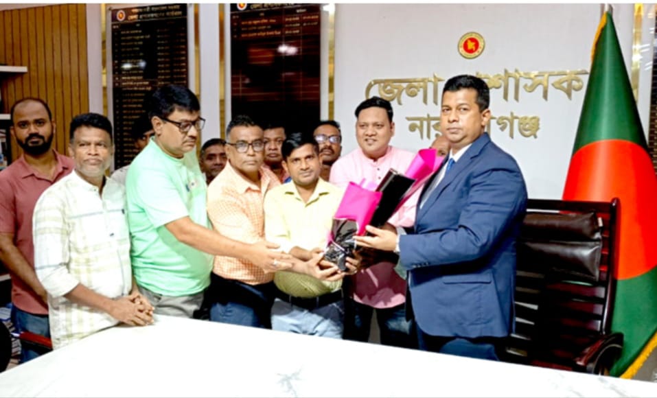 এস এম জহিরুল ইসলাম বিদ্যুৎ : নারায়ণগঞ্জ জেলায় শারদীয় দূর্গাপূজা অত্যন্ত শান্তিপূর্ণ ও উৎসবমুখর পরিবেশে সম্পন্ন হওয়ায় জেলা প্রশাসক কে ফুলেল শুভেচ্ছা ও কৃতজ্ঞতা এবং ধন্যবাদ জানিয়েছে জাগো হিন্দু পরিষদ নারায়ণগঞ্জ জেলা ও মহানগরের নেতৃবৃন্দ। বুধবার (৮ অক্টোবর) সকালে জেলা প্রশাসক কার্যালয় ও পুলিশ সুপারের কার্যালয়ে গিয়ে নেতৃবৃন্দরা এই শুভেচ্ছা বিনিময় করেন। এ সময় পূজা উৎসবমুখর ও নির্বিঘ্ন হওয়ায় নেতৃবৃন্দ জেলা প্রশাসককে আন্তরিক ধন্যবাদ প্রকাশ করেন। তাঁরা দুর্গাপূজার মতো ভবিষ্যতে হিন্দু সম্প্রদায়ের যেকোনো বিপদে-আপদেও জেলা প্রশাসককে পাশে থাকার আহ্বান জানান। জবাবে জেলা প্রশাসক পূজায় প্রশাসনকে সর্বাত্মক সহযোগিতা করার জন্য উপস্থিত নেতৃবৃন্দকে ধন্যবাদ জানান। এ সময়ে উপস্থিত ছিলেন জাগো হিন্দু পরিষদ কেন্দ্রীয় কমিটির সহসভাপতি কৃষ্ণ দাস কাজল, নারায়ণগঞ্জ জেলার সভাপতি সঞ্জীবন মন্ডল, সাধারণ সম্পাদক সুজন দাস, সিনিয়র সহ সভাপতি অসীম রায়, সহ সভাপতি চন্দন দে, মহানগর কমিটির সাধারণ সম্পাদক জনি ভৌমিক, জাগো দাস, আহবায়ক দাস, সদস্য সুমন দাস, রঞ্জিত দাস, আশিষ দাস, সমির দাস হিন্দু পরিষদ বন্দর উপজেলার উপদেষ্টা শিবু রঞ্জিত দাস, সদস্য সচিব আশিক সহ অন্যান্য।