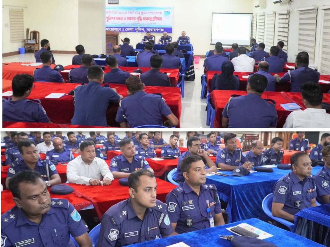 এস এম জহিরুল ইসলাম বিদ্যুৎঃ আজ ১১ অক্টোবর ২০২৫ খ্রি. (শনিবার) নারায়ণগঞ্জ জেলার পুলিশ লাইন্সের মাল্টিপারপাস হলে আসন্ন জাতীয় সংসদ নির্বাচন-২০২৬ এর নির্বাচনী দায়িত্ব সুষ্ঠুভাবে সম্পাদনের লক্ষ্যে পুলিশের দক্ষতা ও সক্ষমতা বৃদ্ধি সংক্রান্ত ২য় ব্যাচের প্রশিক্ষণ কার্যক্রমের শুভ উদ্বোধন ঘোষণা করেন নারায়ণগঞ্জ জেলার সুযোগ্য পুলিশ সুপার মোহাম্মদ জসীম উদ্দিন, পিপিএম (বার)। ০৩ (তিন) দিন মেয়াদী এই প্রশিক্ষণ কার্যক্রমে ৫০ জন প্রশিক্ষণার্থী নিয়ে প্রশিক্ষণ কার্যক্রম শুরু হয়। সম্মানিত পুলিশ সুপার প্রশিক্ষণে অংশগ্রহণকারীদের মনোযোগ ও আন্তরিকভাবে প্রশিক্ষণ গ্রহণের জন্য নির্দেশনা প্রদান করেন। পুলিশ সুপার আরও বলেন, "আসন্ন জাতীয় সংসদ নির্বাচনে ভোট কেন্দ্রগুলোতে শান্তি শৃঙ্খলা পরিস্থিতি নিয়ন্ত্রণ রাখতে নির্বাচন আচরণবিধি বিষয়ে প্রশিক্ষণ প্রদান করা হচ্ছে।" এইপ্রশিক্ষণ কার্যক্রম ২০২৬ সালের জানুয়ারি মাস পর্যন্তচলমান থাকবে। নারায়ণগঞ্জ জেলার আনুমানিক ১৯০০ জন পুলিশ সদস্যসহ পিবিআই, সিআইডি, নৌ পুলিশ, শিল্প পুলিশের সদস্যদের পর্যায়ক্রমে এই প্রশিক্ষণ প্রদান করা হবে। এ সময় আরও উপস্থিত ছিলেন তাসমিন আক্তার, পিপিএম, অতিরিক্ত পুলিশ সুপার (প্রশাসন ও অর্থ), মোঃ ইব্রাহিম হোসেন, অতিরিক্ত পুলিশ সুপার (প্রসিকিউশন) সহ প্রশিক্ষণ কার্যক্রম সংশ্লিষ্ট অন্যান্য পুলিশ সদস্যবৃন্দ।