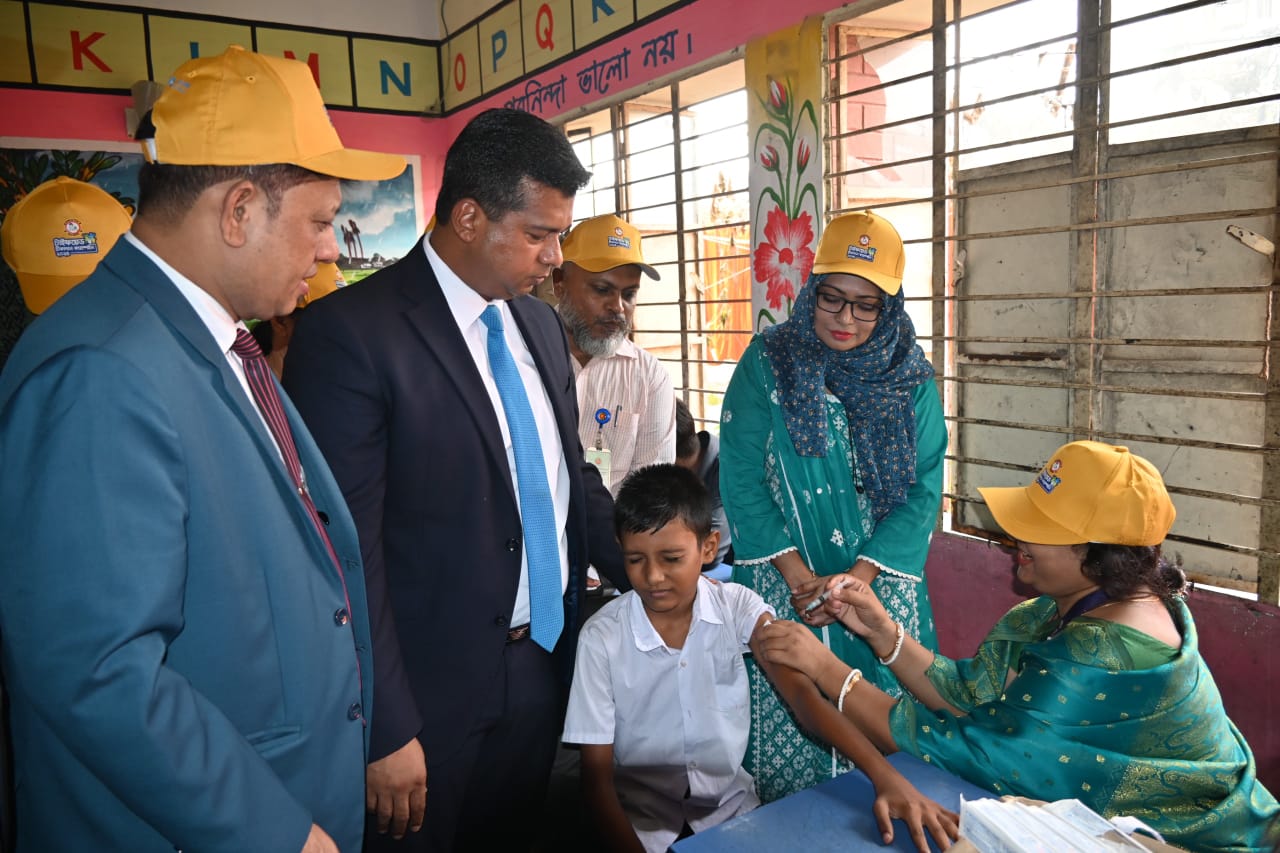 এস এম জহিরুল ইসলাম বিদ্যুৎঃ নারায়ণগঞ্জ টাইফয়েড টিকাদান ক্যাম্পেইনের উদ্বোধন করা হয়েছে। রোববার (১২ অক্টোবর) সকালে নারায়ণগঞ্জ সদর উপজেলার হাজীগঞ্জ সরকারি প্রাথমিক বিদ্যালয়ে জেলা সিভিল সার্জনের আয়োজনে এই টিকাদান ক্যাম্পেইনের উদ্বোধন করা হয়। উদ্বোধন অনুষ্ঠানে প্রধান অতিথি হিসেবে উপস্থিত থেকে জেলা প্রশাসক মোহাম্মদ জাহিদুল ইসলাম মিঞা বলেন, বাংলাদেশ সরকারের উদ্যোগকে স্বাগত জানিয়ে নারায়ণগঞ্জে টাইফয়েড টিকাদান ক্যাম্পেইনের উদ্বোধন করা হয়েছে। ৯ মাস বয়স থেকে ১৫ বছরের নিচের শিশু কিশোররা এই টিকা পাবে। নারায়ণগঞ্জ জেলায় ৫ লক্ষ ১ হাজার ৭২১ জনকে ১৮ দিনের মধ্যে টিকা দেয়া হবে। একজনও যেন টিকাদান কর্মসূচি থেকে বাদ না যায় সেদিকে খেয়াল রাখতে হবে। তিনি আরো বলেন, কোনো শিশু যদি কোনো কারণে বাদ পড়ে, তবে তারা পরবর্তীতে উপজেলা হাসপাতালের স্থায়ী টিকাদান কেন্দ্রে টিকা নিতে পারবে। কেউ যদি টাইফয়েড টিকা থেকে বঞ্চিত হয়ে ভবিষ্যতে টাইফয়েডে আক্রান্ত হয় তাহলে সেই দায়িত্ব আমাদের উপর বর্তাবে। আমরা আমাদের সন্তানদের দক্ষ ও সুস্থ সবল হিসেবে গড়ে তুলতে চাই। আমরা চাই যারা আমাদের দেশের সম্পদে পরিণত হবে তারা যেন কোনোভাবেই রোগে আক্রান্ত না হয়। নারায়ণগঞ্জ জেলা সিভিল সার্জন ডা. আবুল ফজল মুহাম্মদ মুশিউর রহমানের সভাপতিত্বে এসময় আরো উপস্থিত ছিলেন অতিরিক্ত জেলা প্রশাসক মো. আলমগীর হোসাইন সদর উপজেলা নির্বাহী কর্মকর্তা তাছলিমা শিরিন সহ বিভিন্ন পর্যায়ের কর্মকর্তারা।