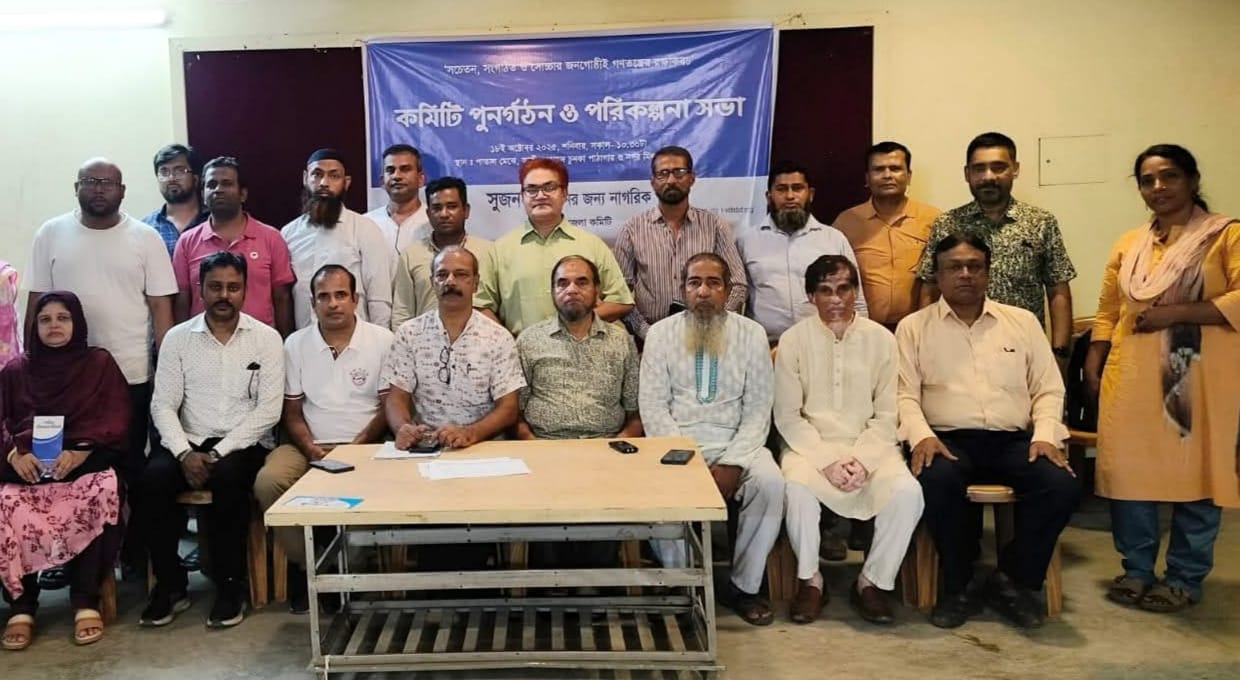এস এম জহিরুল ইসলাম বিদ্যুৎ : সুশাসনের জন্য নাগরিক সুজন এর নারায়ণগঞ্জ জেলা শাখার নতুন কমিটি গঠনের লক্ষ্যে কমিটি পুনর্গঠন ও পরিকল্পনা সভা অনুষ্ঠিত হয়েছে । ১৮ অক্টোবর শনিবার নারায়ণগঞ্জের আলী আহমদ চুলকা নগর পাঠাগার ও মিলন আয়তনের পাতাল মেঝেতে সুজন নারায়ণগঞ্জ জেলার উদ্যোগে এই সভা অনুষ্ঠিত হয় । সভায় সভাপতিত্ব করেন জেলা সাবেক সভাপতি ধীমান সাহা জুয়েল ।প্রধান অতিথি হিসেবে উপস্থিত ছিলেন সুজন কেন্দ্রীয় কমিটির সহ সমন্বয়কারী জিল্লুর রহমান। আজ সভার প্রথম অধিবেশনে সুজন নারায়ণগঞ্জ জেলাধীন রূপগঞ্জ আড়াইহাজার সোনারগাঁ বন্দর ফতুল্লা ও সিদ্ধিরগঞ্জ শাখার সভাপতি সাধারণ সম্পাদক এবং নারায়ণগঞ্জ জেলার কর্মকর্তা সদস্য গণ মতামত পর্বে অংশগ্রহণ করেন। উপস্থিত সকলের মতামত ও প্রস্তাবের প্রেক্ষিতে চলমান নারায়ণগঞ্জ জেলা কমিটি বিলুপ্ত ঘোষণা করে নতুন কমিটি গঠনে সকলে একমত পোষণ করেন । দ্বিতীয় অধিবেশনে সুজন সোনারগাঁ উপজেলা শাখার সভাপতি সহ অধ্যাপক মনিরুজ্জামান মনিরের সভাপতিত্বে সরাসরি প্রস্তাব ও সমর্থনের ভিত্তিতে ২৫ সদস্য বিশিষ্ট নতুন কার্যনির্বাহী পরিষদ ২০২৫-২৭ গঠন করা হয় । উপস্থিত সকলের প্রস্তাব ও সমর্থনে সভাপতি হিসেবে ধীমান সাহা জুয়েলকে পুনরায় এবং সদ্য বিলুপ্ত কমিটির সহ-সাধারণ সম্পাদক আশরাফুল হক আশুকে সাধারণ সম্পাদক নির্বাচিত করা হয় । কেন্দ্রীয় সহ সমন্বয়কারী জিল্লুর রহমান কমিটির ঘোষণা দেন নব নির্বাচিত কমিটির অন্যরা হলেন, সহ-সভাপতি হিসেবে ওমর হায়দার রানা ও এডভোকেট শাহিদুল ইসলাম টিটু,সহ-সম্পাদক মাকসুদা ইয়াসমিন, সাংগঠনিক সম্পাদক মিজানুর রহমান,, অর্থ সম্পাদক , দপ্তর সম্পাদক জহিরুল ইসলাম মিন্টু , প্রচার ও প্রকাশনা সম্পাদক তালুকদার আব্দুল্লাহ আল ফারুক রিংকু, কার্যনির্বাহী সদস্য মোঃ মোক্তার হোসেন, অ্যাডভোকেট তানহা রহমান, জহিরুল ইসলাম বিদ্যুৎ, ফররুখ আহমেদ, আবুল হাসান, মোহাম্মদ সেলিম ভূঁইয়া, অ্যাডভোকেট আহম্মেদ শরীফ পারভেজ, সাবিত আল হাসান, মোঃ আবু সাঈদ, মোঃ আল আমিন আলী, মোঃ নজরুল ইসলাম সুজন, শাহ আলম ভুইয়া ও মজিবুর রহমান প্রমুখ।