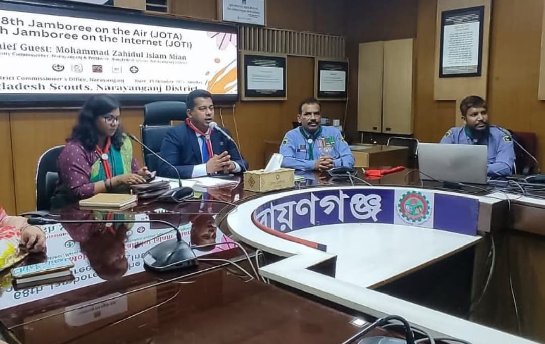 এস এম জহিরুল ইসলাম বিদ্যুৎঃ নারায়ণগঞ্জ জেলা স্কাউটসের সভাপতি ও জেলা প্রশাসক মোহাম্মদ জাহিদুল ইসলাম মিঞা বলেছেন, “তথ্য প্রযুক্তিতে দক্ষ হয়ে আমাদেরকে সাধারণ স্কাউট নয় গ্লোবাল স্কাউট হতে হবে। ডেঙ্গু মোকাবেলায় সচেতনতা সৃষ্টিতে স্কাউটদের কাজ করতে হবে। স্কাউটরা দেশপ্রেমে উদ্বুদ্ধ হয়ে দেশ সেবায় অংশ নিবে, দেশকে সামনের দিকে এগিয়ে নিবে। বিশ্ব দরবারে দেশকে উন্নতি করতে চাইলে, আমাদেরকে দক্ষতার সাথে কাজ করতে হবে। আমরা যারা স্কাউটিং করি, তাদের মধ্যে দেশপ্রেম থাকতে হবে, মানবতা থাকবে, বড়দের সম্মান করার মানসিকতা থাকতে হবে। আমরা এমন স্বপ্ন দেখতে চাই যে, স্বপ্ন আমাদের লক্ষ্যে পৌঁছাতে সহায়তা করবে। ১৯ অক্টোবর বিকালে জেলা প্রশাসক, নারায়ণগঞ্জ এর সভাকক্ষে বাংলাদেশ স্কাউটস, নারায়ণগঞ্জ জেলা আয়োজিত ৬৮ তম জাম্বুরী অন দ্যা এয়ার ও ২৯ তম জাম্বুরী অন দ্যা ইন্টারনেট অনুষ্ঠানে প্রধান অতিথির বক্তব্যে তিনি এ কথা বলেন। এ সময় উপস্থিত ছিলেন, অতিরিক্ত জেলা প্রশাসক (শিক্ষা ও আইসিটি) নিলুফা ইয়াসমিন। অনুষ্ঠান পরিচালনা করেন, জেলা স্কাউট কমিশনার মো. ফজলুল হক ভুইয়া মন্টু ।