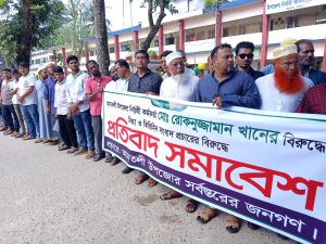 আমতলীতে ইউএনও রোকনুজ্জামান খানের বিরুদ্ধে মিথ্যা সংবাদের প্রতিবাদে মানববন্ধন