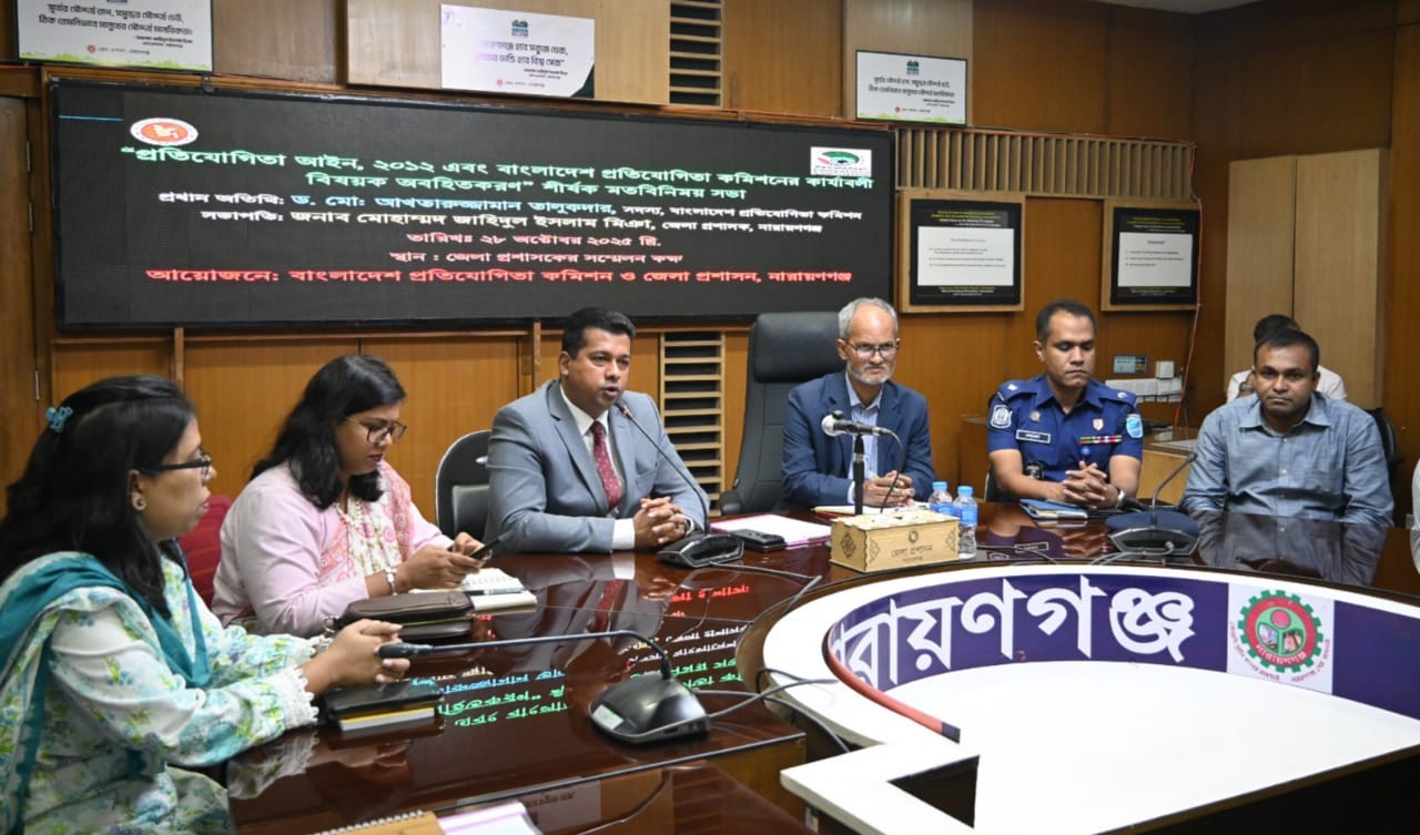 এস এম জহিরুল ইসলাম বিদ্যুৎঃ বাংলাদেশ প্রতিযোগিতা কমিশনের সদস্য ডক্টর মোঃ আখতারুজ্জামান তালুকদার বলেছেন, প্রতিযোগিতা আইন মুক্তবাজার অর্থনীতির জন্য অত্যন্ত গুরুত্বপূর্ণ। সরকার ইতোমধ্যে প্রতিযোগিতা আইন ২০১২ প্রণয়ন করেছে এবং প্রতিযোগিতা কমিশন গঠন করেছে। আইনটি সঠিকভাবে বাস্তবায়ন করা গেলে সিন্ডিকেট ও কার্টেল কার্যক্রম বন্ধ হবে, ভোক্তার স্বার্থ রক্ষা পাবে এবং বিনিয়োগ বৃদ্ধি পাবে। এতে উদ্যোক্তারা নতুন চিন্তা ও উদ্ভাবনে উৎসাহিত হবেন, কর্মসংস্থান বাড়বে এবং টেকসই অর্থনৈতিক উন্নয়ন ত্বরান্বিত হবে। মঙ্গলবার (২৮ অক্টোবর) সকালে নারায়ণগঞ্জ জেলা প্রশাসকের সম্মেলন কক্ষে "প্রতিযোগিতা আইন, ২০১২ এবং বাংলাদেশ প্রতিযোগিতা কমিশনের কার্যাবলী বিষয়ক অবহিতকরণ” শীর্ষক মতবিনিময় সভায় তিনি এ কথা বলেন। তিনি বলেন, দেশের অর্থনৈতিক প্রবৃদ্ধি ও সামগ্রিক উন্নয়নে শুরু থেকেই গুরুত্বপূর্ণ অবদান রেখে আসছে। সবাই চান, ব্যবসায় সুষ্ঠু প্রতিযোগিতামূলক পরিবেশ বজায় থাকুক। তবে নতুন আইন যেন ব্যবসার বিকাশে কোনো প্রতিবন্ধকতা সৃষ্টি না করে, সেটিও নিশ্চিত করতে হবে। প্রতিযোগিতা কমিশন আইন সঠিকভাবে বাস্তবায়ন করা গেলে সিন্ডিকেট ও কার্টেল কার্যক্রম বন্ধ হবে। বাংলাদেশ প্রতিযোগিতা কমিশন ও নারায়ণগঞ্জ জেলা প্রশাসনের আয়োজনে নারায়ণগঞ্জ জেলা প্রশাসক মোহাম্মদ জাহিদুল ইসলাম মিঞার সভাপতিত্বে মতবিনিময় সভায় বক্তব্য রাখেন, অতিরিক্ত জেলা ম্যাজিস্ট্রেট মিজ নিলুফা ইয়াসমিন, অতিরিক্ত জেলা প্রশাসক (সার্বিক) মোহাম্মদ আলমগীর হোসাইন, অতিরিক্ত পুলিশ মোতায়েন সোহেল রানা'সহ ব্যবসায়ী, সংবাদকর্মী ও বিভিন্ন শ্রেণী পেশার মানুষ। উক্ত সভায় নারায়ণগঞ্জ জেলা প্রশাসনের প্রতিনিধি, সংশ্লিষ্ট সরকারী দপ্তরের প্রতিনিধি, নারায়নগঞ্জ চেম্বার অব কমার্স এন্ড ইন্ডাস্ট্রিজ এর আওতাধীন ব্যবসায়ীগণ, নারায়ণগঞ্জ জেলার আওতাধীন বিভিন্ন ব্যবসায়ী সমিতি এবং প্রিন্ট ও ইলেকট্রনিক মিডিয়ার সাংবাদিকবৃন্দ এবং অংশীজন অংশগ্ৰহন করেন।
