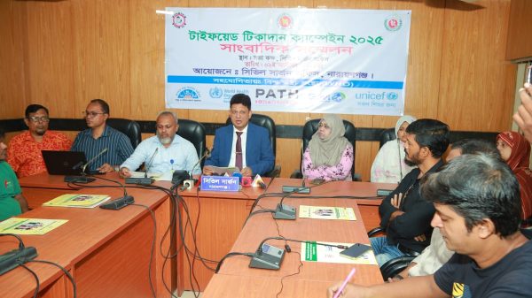 এস এম জহিরুল ইসলাম বিদ্যুৎঃ নারায়ণগঞ্জে টাইফয়েড প্রতিরোধে শুরু হচ্ছে ১৮ দিনব্যাপী “টাইফয়েড টিকাদান ক্যাম্পেইন-২০২৫”। এ উপলক্ষে বৃহস্পতিবার (৯ অক্টোবর) সকাল ১০টায় জেলা সিভিল সার্জন কার্যালয়ের সম্মেলন কক্ষে এক