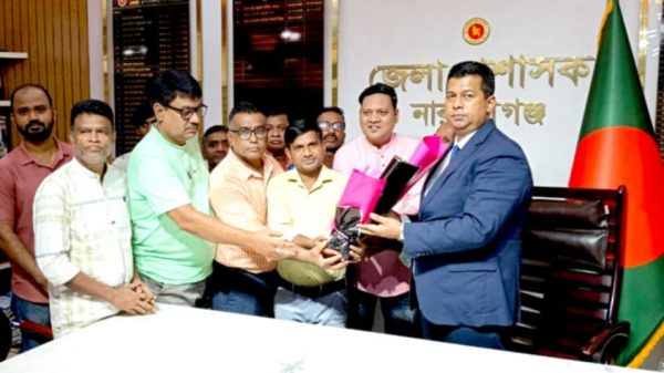 এস এম জহিরুল ইসলাম বিদ্যুৎ : নারায়ণগঞ্জ জেলায় শারদীয় দূর্গাপূজা অত্যন্ত শান্তিপূর্ণ ও উৎসবমুখর পরিবেশে সম্পন্ন হওয়ায় জেলা প্রশাসক কে ফুলেল শুভেচ্ছা ও কৃতজ্ঞতা এবং ধন্যবাদ জানিয়েছে জাগো হিন্দু